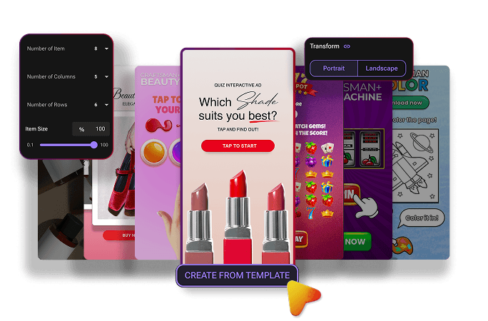 Design playable, interactive, and HTML5 ads without code. Start from performance-ready templates and customize every element to match your brand, format, and audience.
