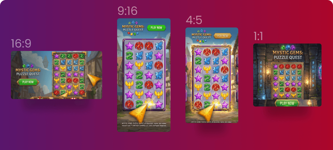 Access a diverse library of playables, UA videos, interactive ads, and app store assets to support client campaigns.